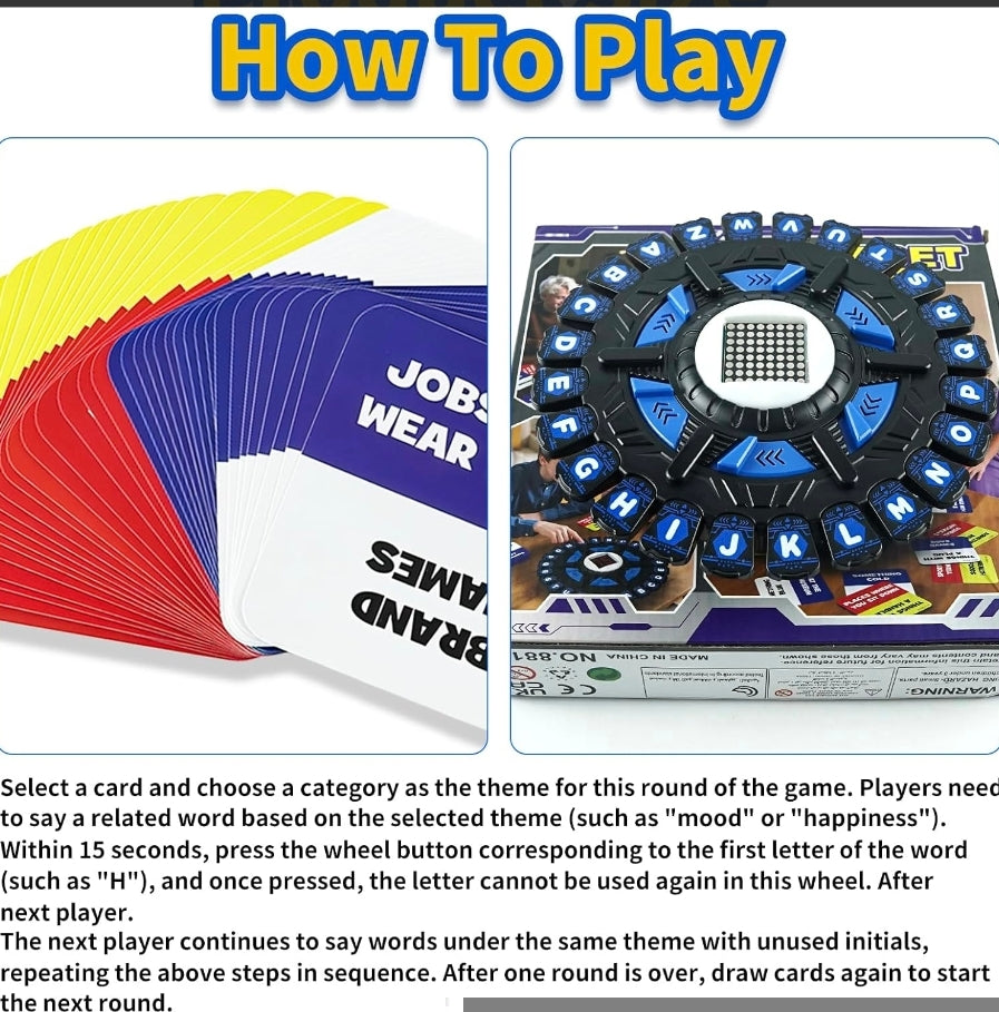 Fast-paced game enhances quick thinking and vocabulary skills.