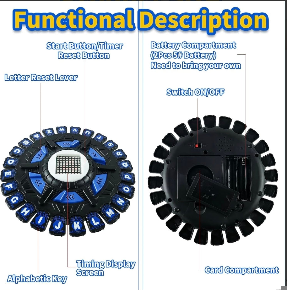 Includes 36 cards and a wheel timer for interactive gameplay.