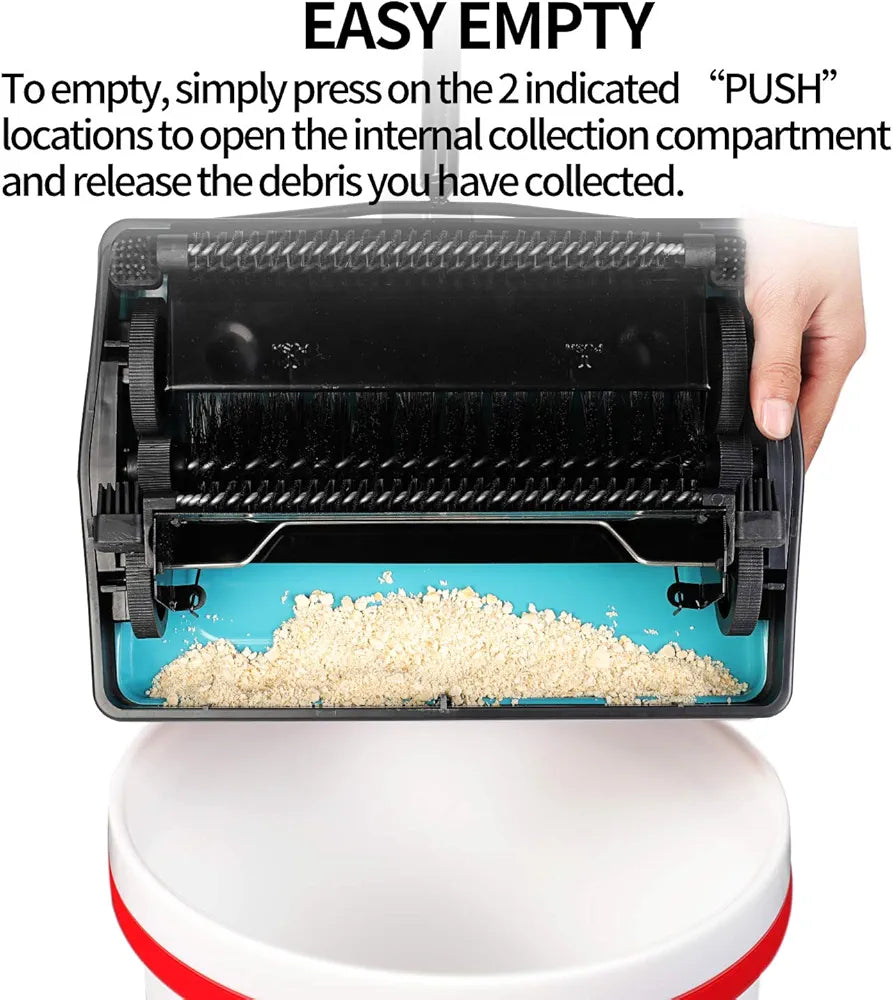 Ideal for quick clean-ups on low-pile carpets, rugs, and undercoat carpets, handling pet hair, dust, crumbs, and small paper scraps.