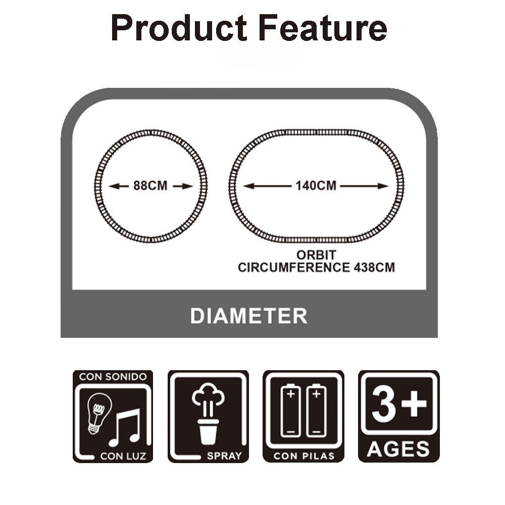 Electric train toy includes a classic steam locomotive, tank car, coal car, freight car, 10 curved tracks, 4 straight tracks and a water bottle.